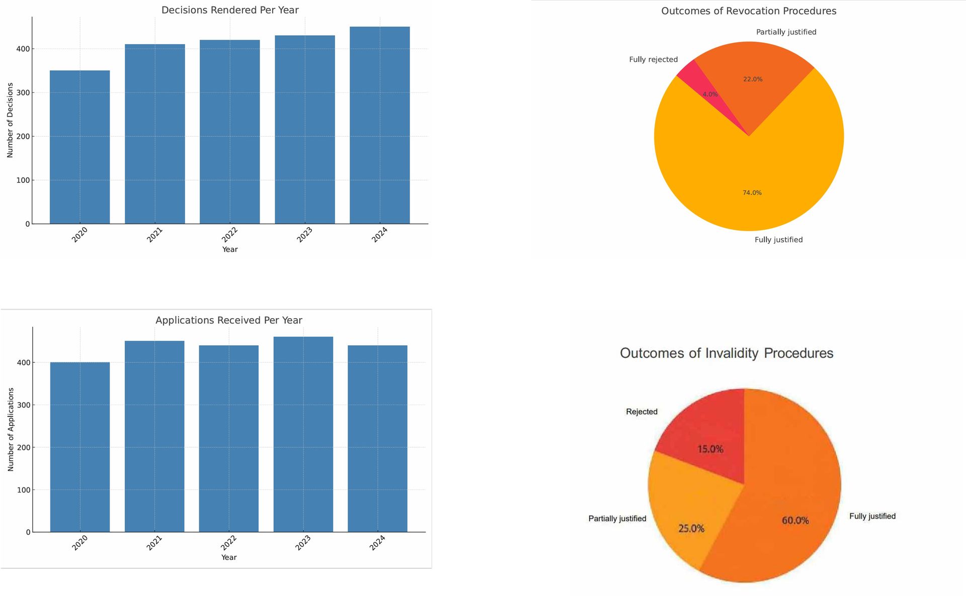 Since 2020, nearly 2,200 applications for invalidity or revocation have been filed before the INPI, with more than 1,800 decisions delivered. The annual average—around 440 cases—is well above the level seen before judicial courts prior to the reform.